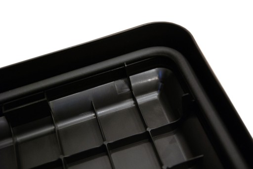 Skrzynka posiada wzmocnioną konstrukcje poprzez użebrowanie oraz przetłoczenia. Równie mocny zawias umieszczony na całej szerokości skrzynki.