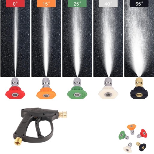 - ✅【5 kolorowych końcówek dysz】: Zestaw krótkich pistoletów natryskowych do myjki ciśnieniowej jest wyposażony w dysze 0 stopni (czerwone), 15 stopni (żółte), 25 stopni (zielone), 40 stopni (białe) i dysze stopnia mydlanego (czarne), które mogą Spełnij różne potrzeby w zakresie czyszczenia.