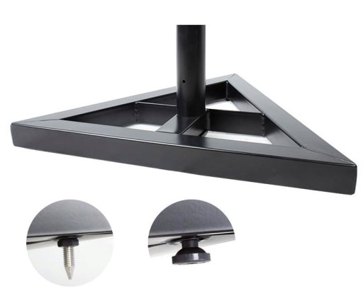 ⭕ Stabilna trójpunktowa podstawa z opcjonalnymi kolcami poziomującymi i plastikowymi nóżkami.
