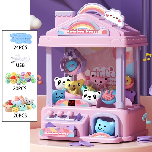 Maszyna do pazurów z 20 małymi pluszowymi zwierzętami dla małych chłopców i dziewcząt w wieku 3–6 lat. Różowy