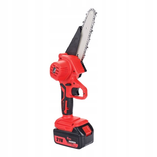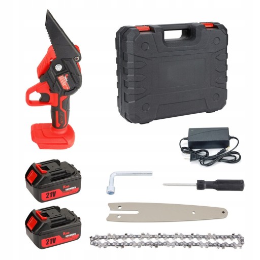 - Bezprzewodowa mini piła łańcuchowa jest wyposażona w 2 akumulatory 6000 mAh i szybką ładowarkę. Może pracować nieprzerwanie przez 0,5-2 godziny.