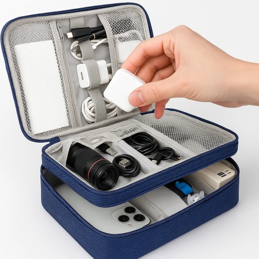 Podróże służbowe i prywatne: Doskonały sposób na uporządkowanie ładowarek, kabli USB, kart pamięci, adapterów i słuchawek – koniec z plątającymi się przewodami.