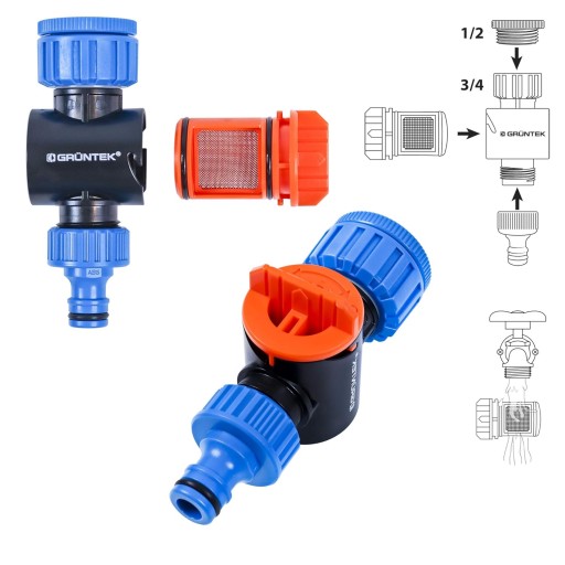 Za pomocą złączek 1/2" i 3/4" można szybko i łatwo podłączyć do wszystkich powszechnie stosowanych kranów ogrodowych z gwintem. Szybkozłączkę można odkręcić, co umożliwia połączenie śrubowe 1/2".