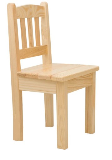 Krzesełko przygotowane z myślą o dziecku w kolorze bezbarwnie lakierowanej sosny. Siedzisko jest zrobione z litego drewna sosnowego metodą czopowania i klejenia przez co jest bardzo solidne.