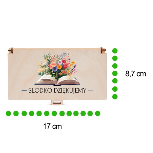 Drewniane pudełko na cukierki krówki podziękowanie na zakończenie roku szkolnego