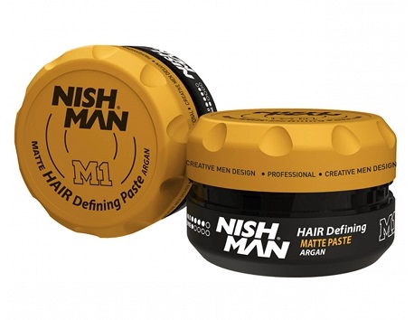 Pasta do stylizacji włosów Nishman Hair Defining Matte Paste M1 o przyjemnym zapachu drewna i cynamonu od tureckiej marki Nishman to klucz do doskonałej stylizacji o jak najbardziej naturalnym wyglądzie, która niezawodnie utrzyma się przez 24 godziny. Matująca pasta Nishman zawiera argan, który zapewnia nawilżenie i odżywienie włosów. Utrzymuje odpowiedni poziom wilgoci i zachowuje zdrową kondycję włosów. Kosmetyk nie pozostawia tłustej warstwy na włosach i z łatwością można go zmyć ciepłą wodą.