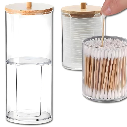 ✅ Ochrona przed kurzem: drewniany element pokrywki skutecznie zapobiega kurzeniu się patyczków kosmetycznych.