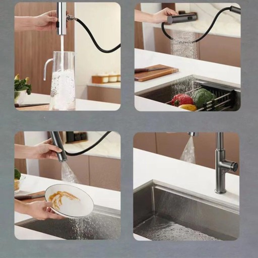 5️⃣ Uniwersalny, posiada 4 funkcje ułatwiające codzienne czynności, np. silny strumień do mycia naczyń, czy szeroki strumień do płukania owoców.