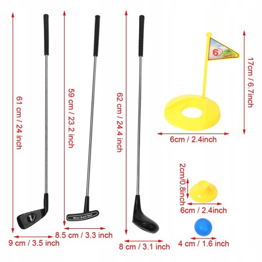 4. Te zestawy kijów golfowych są przeznaczone dla przedszkolaków. Z drugiej strony koncepcja projektu ma na celu pielęgnowanie dziecięcej zabawy w golfa, aby zapobiegać kontuzjom podczas użytkowania.