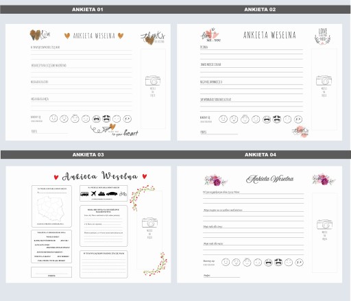 - Ilość kartek: 70 ankiet (lewa strona pusta, prawa strona ankieta)