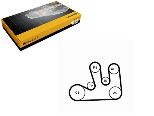 Zestaw pasków wielorowkowych (z rolkami) DACIA LOGAN, LOGAN EXPRESS, LOGAN MCV, SANDERO, SOLENZA RENAULT CLIO II, ESPACE III, KANGOO, KANGOO EXPRESS, LAGUNA I, LAGUNA II 1.4-2.0 01.96- CONTINENTAL CTAM
