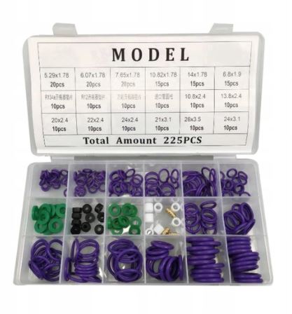 ZESTAW ORINGÓW do KLIMATYZACJI 225 SZT. oraz Uszczelnienia do Węży Serwisowych