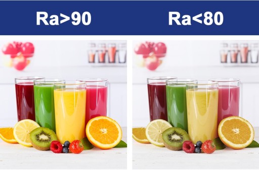 CRI RA>90 – wysoka wartość współczynnika RA oznacza bardziej naturalne i dokładne odwzorowanie barw, co prowadzi do lepszego odbioru kolorów przez nasze oczy. Ważnym aspektem jest również mniejsze zmęczenie oczu i poprawa jakości widzenia.