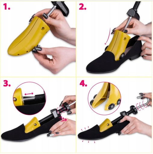 Sprawdź dokładnie wymiary produktu przed złożeniem zamówienia. Pamiętaj, że proces rozciągania obuwia jest długotrwały! Poświęć temu kilka dni aby nie zniszczyć swoich butów oraz prawideł.