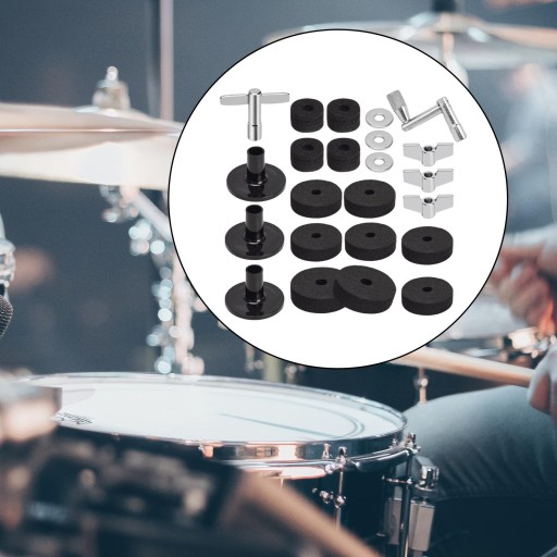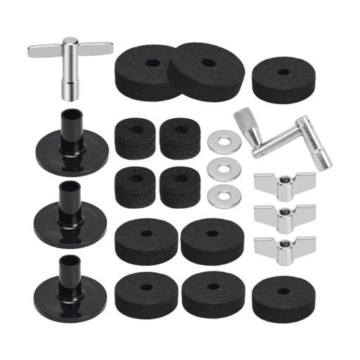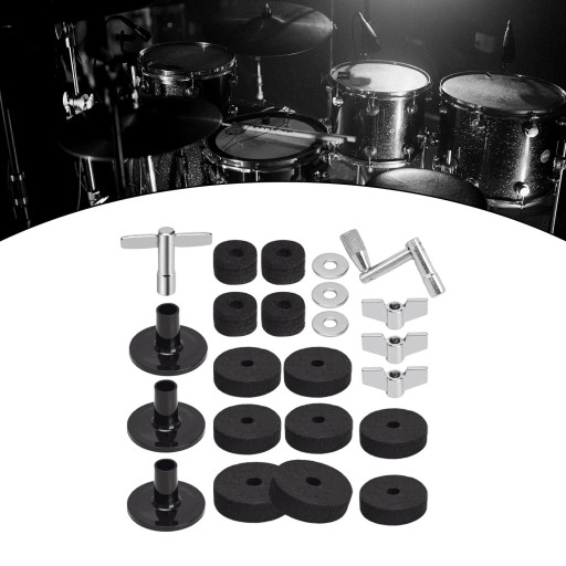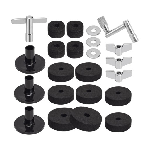 [Nadaje się do]: 23 szt. Akcesoria zamienne do talerzy obejmują podkładki, tuleję, nakrętki, podkładki dystansowe, klucz, odpowiednie dla większości zestawów perkusyjnych.