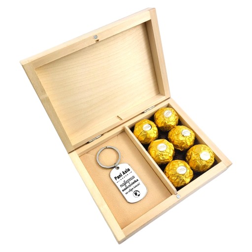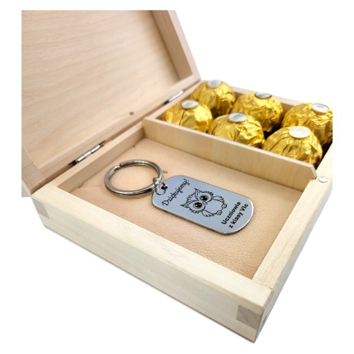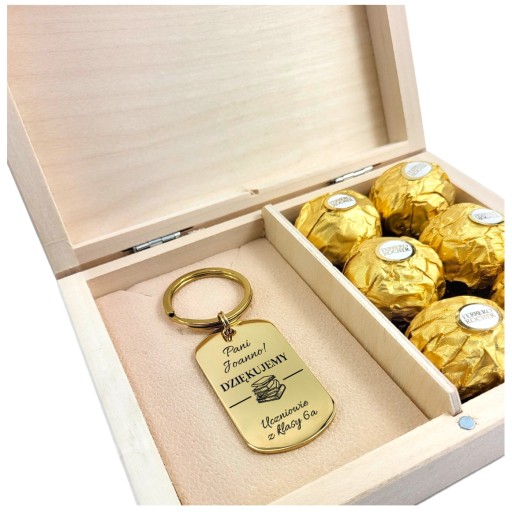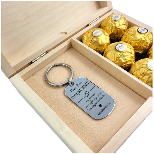 ✅ Drewniane pudełko, a na nim wygrawerowana, wybrana i spersonalizowana sentencja oraz solidny brelok z grawerem