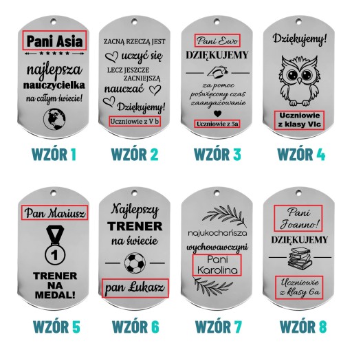 ✅ 8 wzorów frontów pudełka i breloków - wybieraj dowolnie!