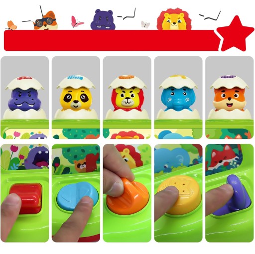 🎨🎨🎨 [5 Zwierzęta Pop-Up] Ta zabawka edukacyjna jest idealna dla dzieci w wieku powyżej 12 miesięcy. Zawiera urocze postacie zwierząt i gra wesołą muzykę. Pomaga poprawić drobną motoryczność i zachęca do naturalnej ciekawości.
