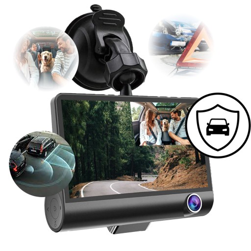 Ekran 4" ➡️ Karta 32GB ➡️ 3 kamery ➡️ Nagrania FullHD ➡️ Asystent parkowania ➡️ Wysokie kąty widzenia ➡️ Obsługa kart 64GB ➡️ Rejestrator Uber ➡️ Kamera samochodowa taxi ➡️ wideo rejestrator bolt