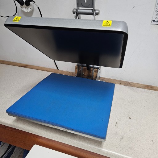 Do prasy możemy dodać drewniany blat, który ułatwia położenie na prasie większych rozmiarów koszulek (wówczas materiał leży cały i widać ładnie środek koszulki).