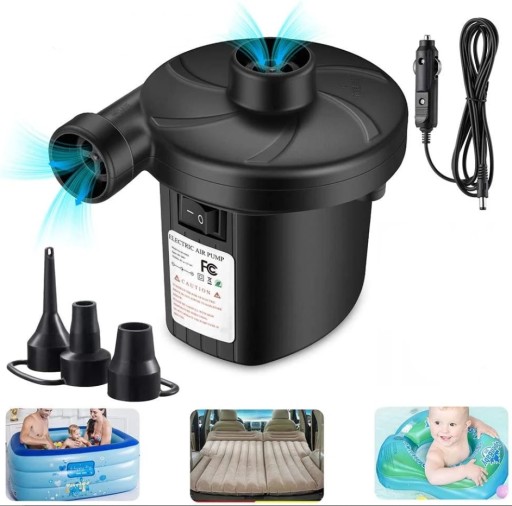 MOCNA ELEKTRYCZNA POMPKA DO MATERACA PIŁKI DMUCHAŃCA 60W +KOŃCÓWKI 12V