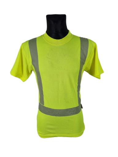 Koszulka drogowa z pasami odblaskowymi krótki rękaw była używana, jest w bardzo dobrym stanie. Posiada nieznaczne ślady użytkowania inne naszywki imienne, inne logo firm. Wykonana jest z bardzo dobrych materiałów. Pochodzi z niemieckich zakładów.