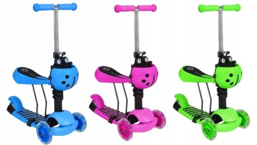 - Model jest połączeniem aż trzech pojazdów: hulajnogi, jeździka i deskorolki