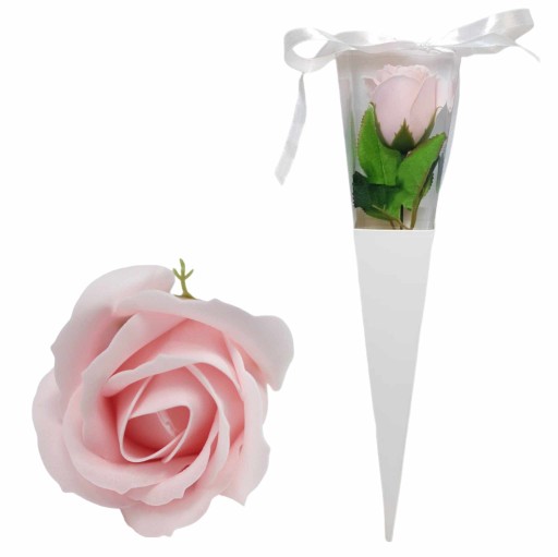 Pachnąca róża mydlana w rożku różowa PREZENT na zakończenie roku szkolnego