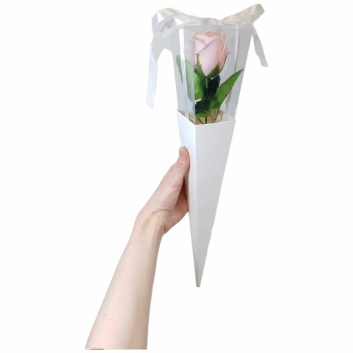 ⭐ pudełko rożek w kształcie stożka ze wstążką.