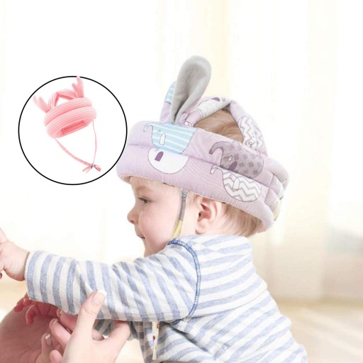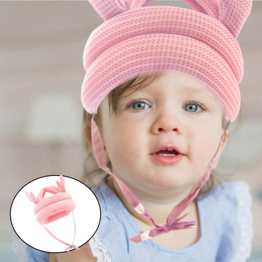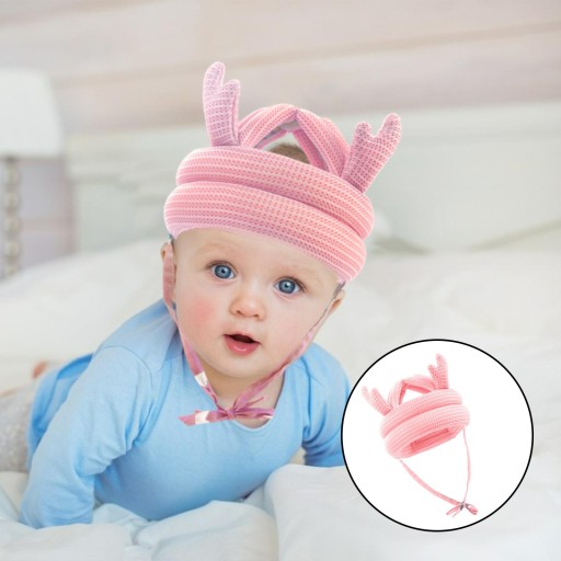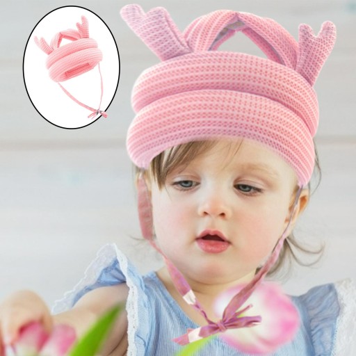 Czapka ochronna dla malucha Zderzak Bonnet Bawełniana dziecięca osłona głowy antykolizyjna z rogami różowa