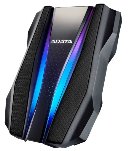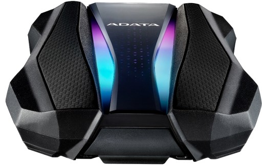 Konstrukcja dysku HD770G jest całkowicie odmienna od innych zewnętrznych dysków twardych dzięki przykuwającym uwagę ściętym krawędziom oraz dwóm paskom RGB w kształcie wiązek światła, które nadają mu charakter. Dodatkowo między dwoma paskami świetlnymi znajduje się główna ozdoba w postaci perforowanego wzoru, który ożywa wraz z pulsującym podświetleniem RGB.