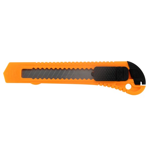 Nóż wykonany jest z wysokiej jakości stali oraz tworzywa sztucznego, co gwarantuje trwałość i odporność na działanie warunków zewnętrznych. Zestaw zawiera 12 sztuk, co pozwala na długotrwałe korzystanie z narzędzia oraz zapewnia ich stałą dostępność w trakcie intensywnych prac. Nóż posiada wysuwane ostrze łamane co 0,5 cm. Łącznie do wykorzystania jest 10 części, które łamie się jedna po drugiej po zużyciu i stępieniu danego fragmentu. Rękojeść noża wykonana jest z twardego tworzywa sztucznego. System „auto lock” zabezpiecza ostrze przed niebezpiecznym, przypadkowym wysunięciem. Nóż zakończony jest małym otworem umożliwiającym powieszenie go w narzędziowni. W bardzo łatwy sposób można wymienić ostrze na nowe.