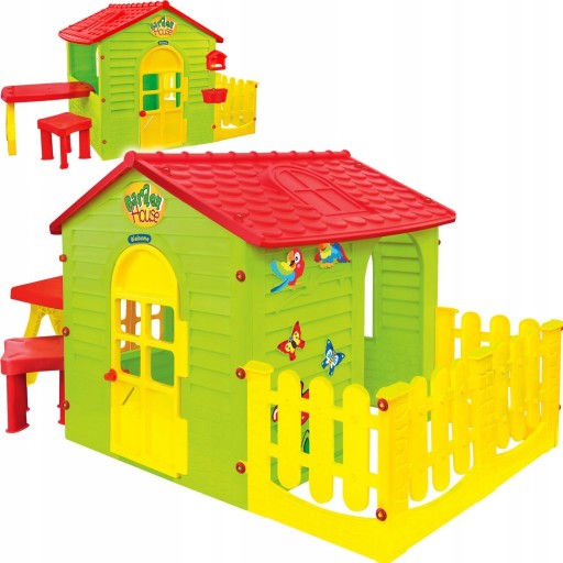 DOMEK OGRODOWY DLA DZIECI Z PŁOTKIEM I STOLIKIEM