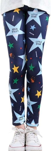- Dziewczęce legginsy ze stretchem Główny skład materiału: poliester (poliester), wzór w duże gwiazdki, jest miękki i tworzy chłodny i komfortowy klimat.
