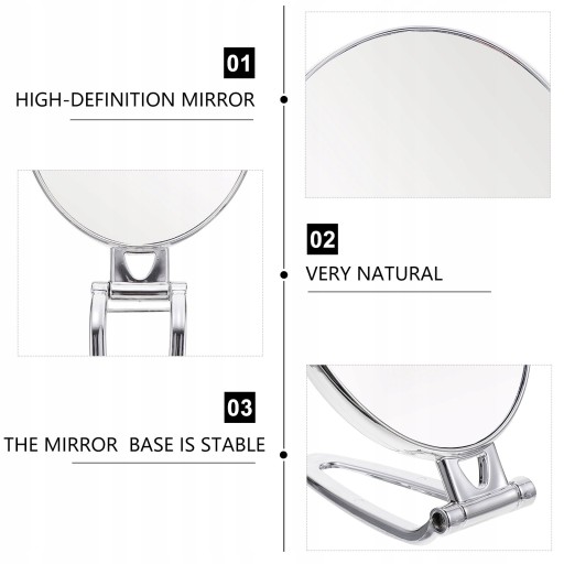 - obrotowe lustro, dopasowanie dowolnego kąta do łatwego oglądania całej twarzy, jasnej i bez wady, brak zniekształceń, praktyczne i wygodne.