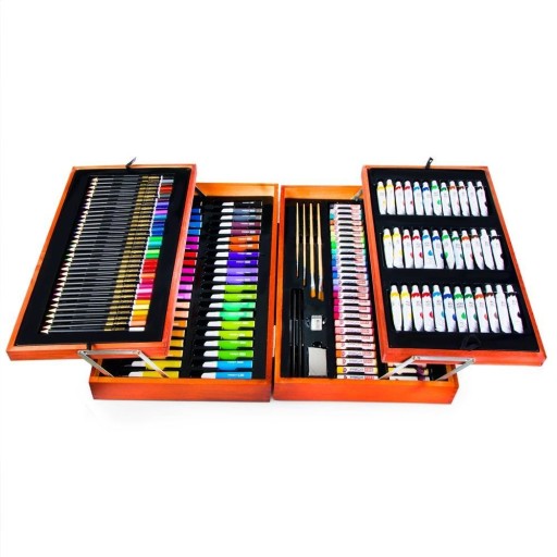 Zestaw artystyczny to praktyczne zestawienie elementów, które świetnie sprawdzą się przy każdym plastycznym wyzwaniu.Zestaw do malowania i kolorowania to praktyczne rozwiązanie dla wszystkich, którzy cenią sobie wygodę i kreatywne rozwiązania. Zestaw składa się z aż 174 elementy, a w jego skład wchodzi 36 farbek akrylowych, 36 kredek, 54 świecówki, 42 flamastry, 4 pędzelki, 2 ołówki, gumka, temperówka. Wysokiej jakości produkty to doskonały początek artystycznej przygody.Zestaw artystyczny sprawdzi się także dla tych, którzy stawili już pierwsze kroki w świecie sztuki.Całość została umieszczona w eleganckiej i praktycznej walizce, ułatwiającej przenoszenie i dodatkowo podbijającej walory estetyczne całego zestawu. Zestaw do malowania i rysowania to nie tylko obowiązkowy element wyposażenia każdego ucznia czy miłośnika kreatywnych zadań, ale także doskonały pomysł na prezent.