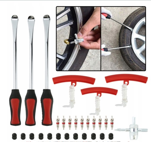 - Opakowanie: W zestawie znajdują się 3 łyżki dźwigniowe do opon, 3 ochraniacze opon, 1 narzędzie do zaworów 4-drożnych, 10 rdzeni do zaworów opon, aby zastąpić idealne narzędzie do opon