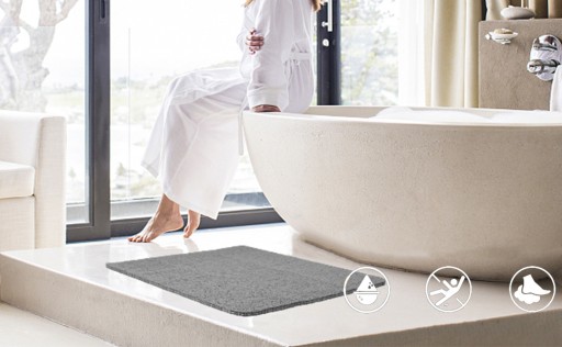 - Jeśli woda nie będzie się zbierać i zastoi, co przyciąga pleśń i pleśń, które należy usunąć Nasza mata łazienkowa jest odporna na pianę mydlaną, szybkoschnąca i nie pozostawia śladów na nowo oszklonych wannach.