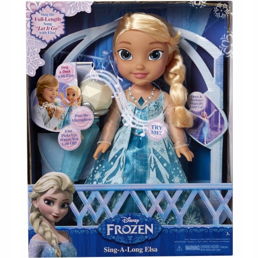 Opi➤ Zaśpiewaj z Elsą! Śpiewająca lalka Elsa z bajki Kraina Lodu (Frozen). Elsa ubrana jest w piękną, baśniową suknię, posiada mikrofon, dzięki któremu może śpiewać wraz ze swoją właścicielką. Została wyposażona w funkcję Royal Reflection Eyes, czyli trójwymiarowe oczy w których dostrzec można blask marzeń. Do lalki dołączone są zdejmowane pantofelki. Jej wysokość to 36 cm. Lalka może śpiewać w 2 trybach: - tryb duet – po naciśnięciu klejnociku w naszyjniku lalki zaczyna być odtwarzana ścieżka dźwiękowa piosenki „Mam tę moc”. Po przystawieniu do ust lalki mikrofonu lalką zaczyna śpiewać słowa piosenki po polsku. Jeśli dziewczynka zabierze mikrofon lalce i przystawi sobie do ust oraz naciśnie przycisk znajdujący się na mikrofonie, wtedy lalka przestaje śpiewać, nadal jest odtwarzana ścieżka dźwiękowa, a śpiewać zaczyna dziewczynka – do mikrofonu, który pogłaśnia śpiew dziewczynki. W trakcie zabawy sukienka lalki mieni się światełkami. - tryb – cała piosenka – po podniesieniu lewej ręki lalki do góry, odtwarza ona całą piosenkę (ścieżka dźwiękowa słowa) po polsku. Aby ponownie ją odtworzyć należy opuścić rączkę i podnieść ją ponownie. W trakcie zabawy sukienka lalki mieni się światełkami. Zaśpiewaj "Mam tę moc" z Elsą. Zaśpiewaj w duecie z Elsą. Śpiewaj z mikrofonem. Przyłóż mikrofon do twarzy Elsy, a ona zacznie śpiewać, tam gdzie przerwano piosenkę! Zapakowany w ładny i kolorowy karton. Lalka idealna dla młodej księżniczki, która będzie mogła czesać i modelować swoją ulubioną bohaterkę. Dodatkowo razem będą mogły śpiewać bardzo popularną piosenkę. SPECYFIKACJA ➤ Wiek : 3 ➤ Wersja językowa: 7 języków, w tym POLSKI ➤ Opakowanie : Fabryczne kolorowe opakowanie