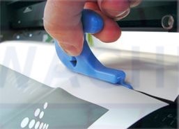 Nóż do odcinania folii pozwala na równe i szybkie odcięcie folii po zakończeniu wycinania na ploterze, chroniąc jednocześnie ploter przed zarysowaniami.