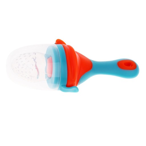 Miękka, silikonowa osłona z pokarmem pozwala dziecku samodzielnie karmić się owocami i warzywami przez małe otwory