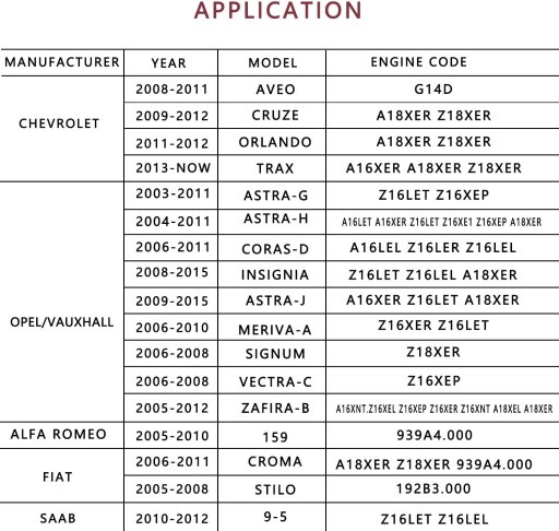 ✅ Chevrolet : 1.4 G14D, LDD //1.6 LXV