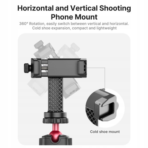 【Obracany uchwyt na telefon z zimną stopką】 Zakres mocowania wynosi 5,5-10 cm, jest kompatybilny z większością smartfonów i obsługuje obrót o 360 °, łatwo przełącza się między kątem użytkowania w pionie i poziomie, z mocowaniem na zimną stopkę u góry do instalacji mikrofonu lub lampy wideo LED wygodnie.