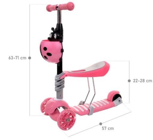 Hulajnoga z regulowaną wysokością kierownicy i siodełka, rośnie wraz z dzieckiem.