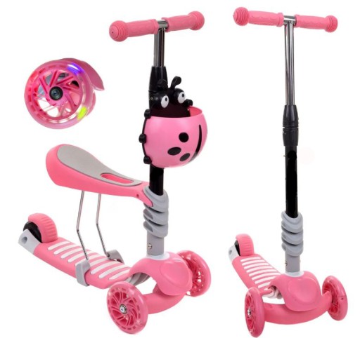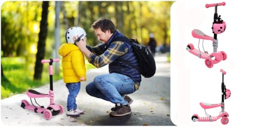 БАЛАНСИРУЮЩИЙ СКУТЕР 3в1 BIEDRONKA RIDING BOY ДЛЯ ДЕТЕЙ 3 КОЛЕСА РОЗОВЫЙ