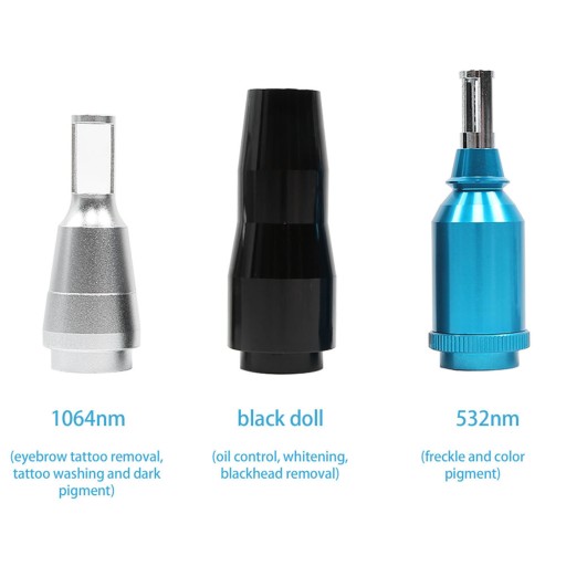 3 x akcesorium robocze: 532nm (usuwanie plam i kolorowego pigmentu), 1064nm (usuwanie tatuażu brwi, usuwanie tatuażu i usuwanie ciemnego pigmentu), Black Doll (kontrola sebum, wybielanie, usuwanie zaskórników)