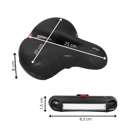 Specjalna lampka mocowana pod siodełkiem oprócz standardowego oświetlenia rowerowego to świetny sposób na zwiększenie widoczności po zmroku, a tym samym bezpieczeństwa jazdy. Lampka posiada aż 5 trybów świecenia, w tym również tryby alarmowe i sygnał SOS. Siodełko dodatkowo posiada również element odblaskowy.