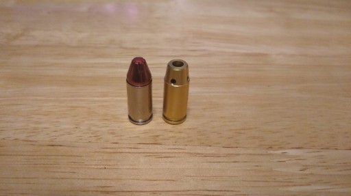 Boresighter laserowy jest dopasowany do komory 9mm, specyficznego kalibru.