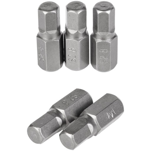 Bity o długości 30 mm z uchwytem sześciokątnym w rozmiarze 10 mm.