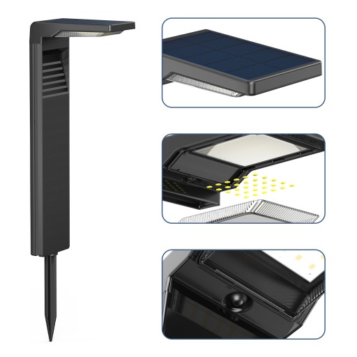 Słoneczne oświetlenie ogrodowe jest wykonane z wysokiej jakości tworzywa ABS i wodoodpornej technologii IP64, która jest odporna na promieniowanie UV i korozję oraz może wytrzymać różne warunki pogodowe, takie jak deszcz, śnieg, mróz i upał. Może być używany w temperaturach od -20 ~ 60 ° C.